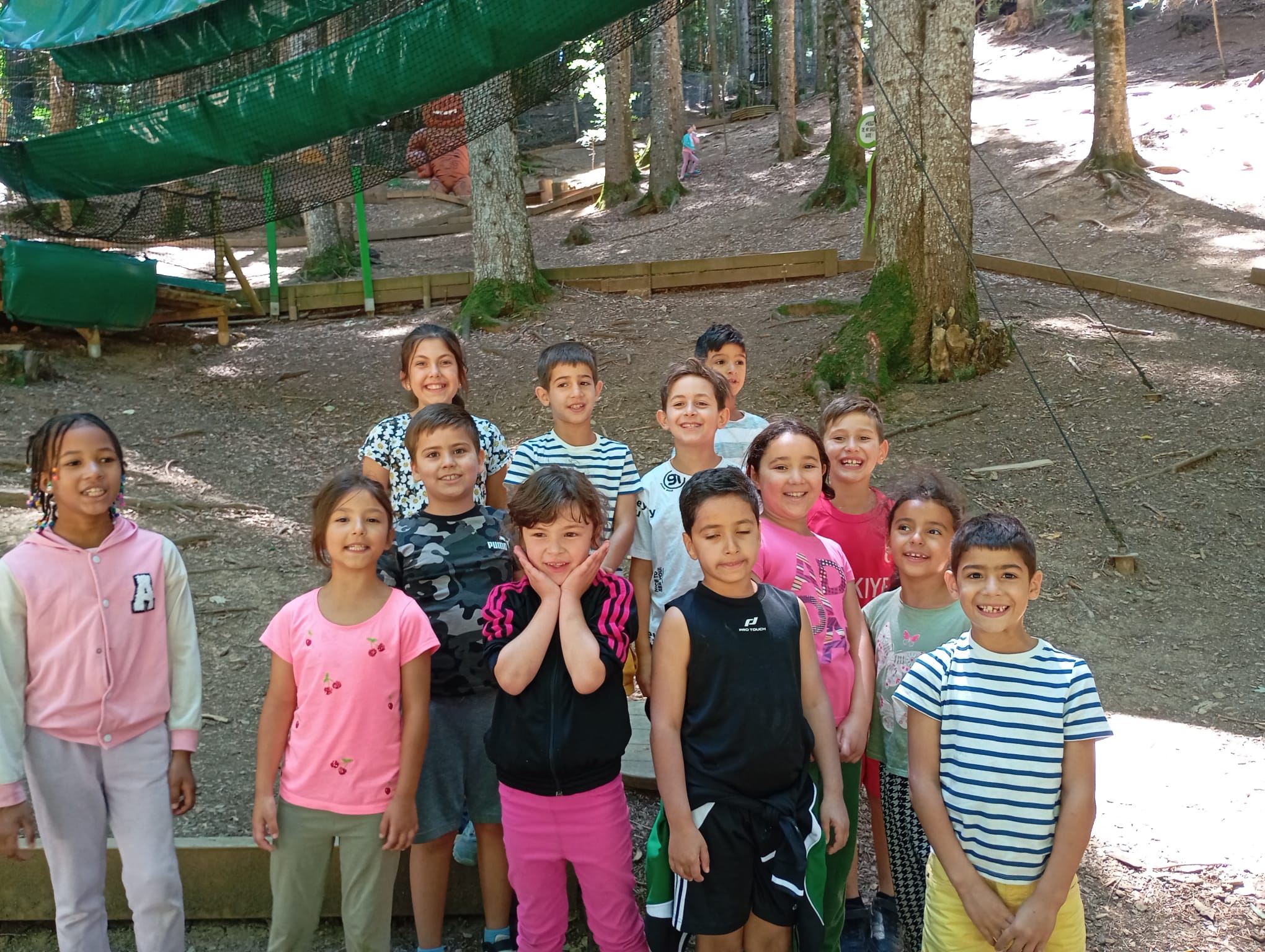 L’après-midi, place à l’accrobranche : un parcours sécurisé par des filets, permettant aux plus petits comme aux plus grands d’évoluer dans les hauteurs des arbres en toute confiance.