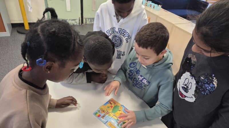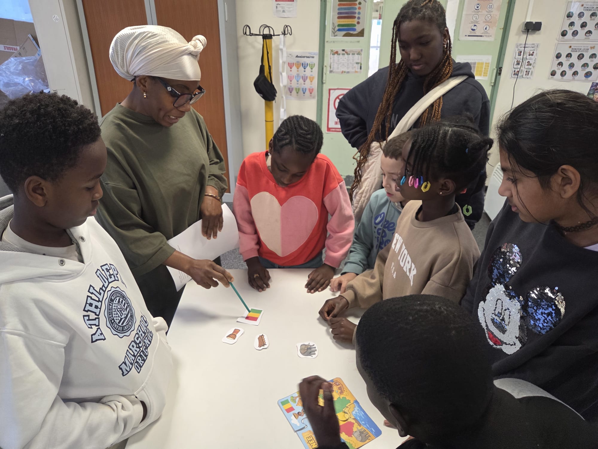 L’aînée incarnait le rôle d’une exploratrice, confiant différentes missions aux enfants, tandis qu’Aminata présentait son pays : ses caractéristiques, ses langues, ses symboles, ses valeurs et ses traditions. Tout au long de l’après-midi, les enfants ont dû résoudre plusieurs énigmes : mots mêlés, puzzles, chasse au trésor, coloriage du drapeau guinéen.