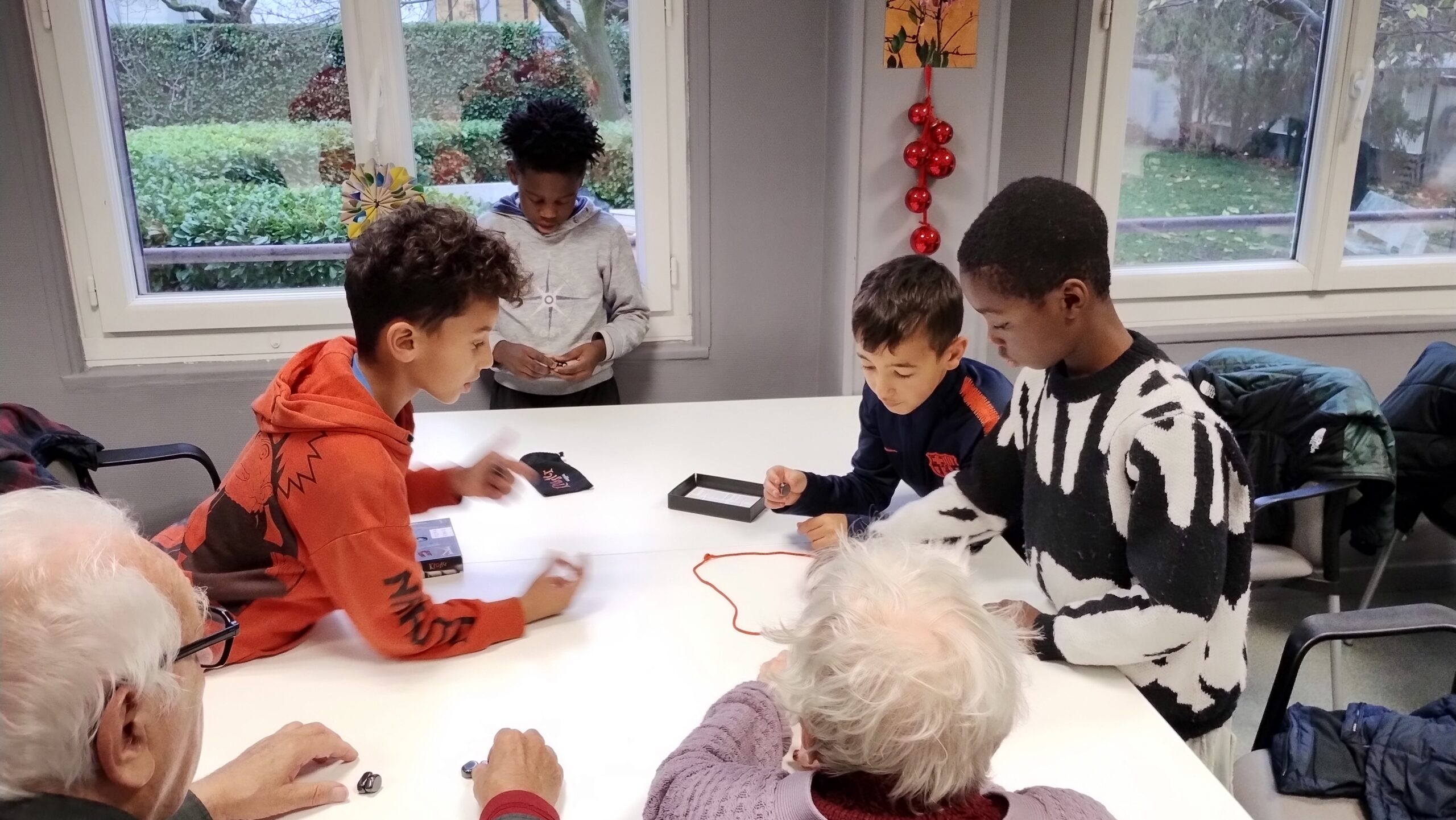 Au cours de cette rencontre, jeunes et résidents ont partagé un moment convivial autour de jeux de société, favorisant les échanges, la coopération et la bonne humeur. La rencontre s’est poursuivie par un atelier cuisine, durant lequel ils ont préparé ensemble le goûter, qu’ils ont ensuite dégusté collectivement.